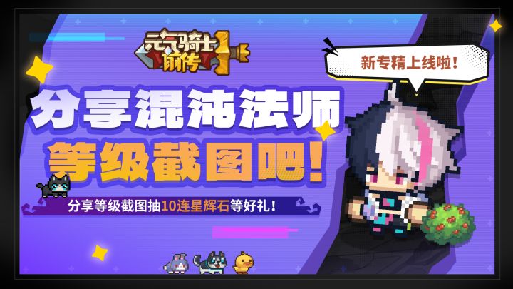 小骑士们好呀,混沌法师的新专精已于今日上线啦,大家都有体验吗?村长准备了10连星辉石好礼,快来参与活动吧!【活动时间】即日起至2025年2月28日12:00【参与方式】前往游戏,转职为混沌法师职业并截图分享,即视作参与活动。举个例子注意:请小骑士们遵守参与规则,若使用村长的截图参考或其他小骑士的截图,我们将会删除处理,请大家进入游戏自行截图参与活动哦!【活动奖励】村长会在所有按规