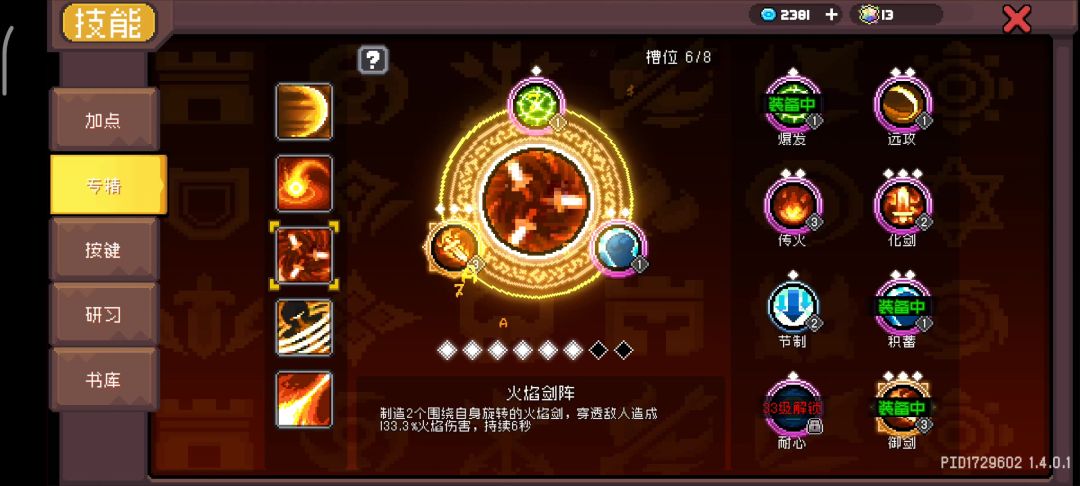 首先是火焰剑蓄力专精不生效,然后是带重弹羁绊和飞剑专精,火焰剑就不动了,也没伤害
