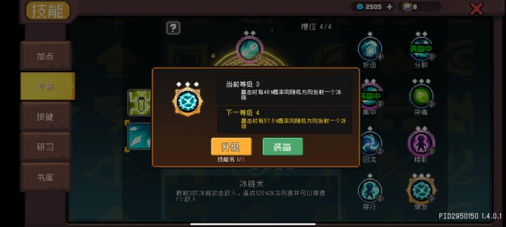 羁绊随关卡增加(比如分裂开局就有,羁绊召唤得到古代遗迹)不同品质技能专精升级要的书数量不同,满级五级。升级需要的书 蓝:1235 紫:1222 金:1111目前我看到的专精是五蓝二紫一金(冰锥术和迅捷灵药)也就是一个专精靠抽满至少要73抽,有些职业四个专精技能,还是混池(只有融合职业池,并且会歪),乐。抽到已满级的会返代币,我目前只遇到了返5(只有一个紫的抽满了),而自选紫是20,可以推测