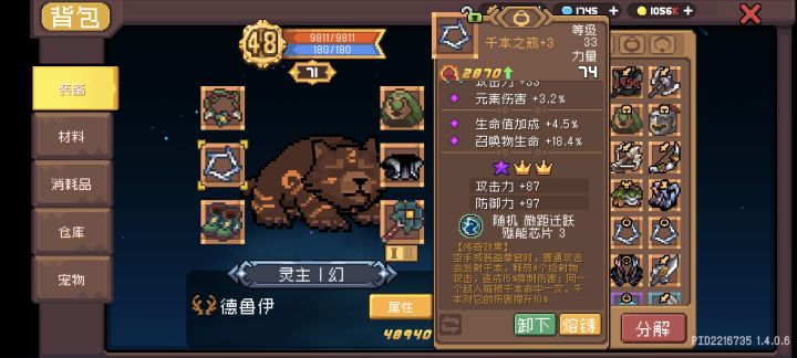 外加,能看到一开始木桩有bug无法触发,最后打木桩又正常了。所以,打木桩有bug,有一定可能仅限木桩有问题。 装备离成型差武圣衣服和精灵弓。所有词条和羁绊全走毒伤走攻击。核心羁绊是弹射,厄运。效果增幅是否有效,我还是看不出来。看伤害木桩已经失效了。 基本装备做出七八成,就应该400以下随便打了。 #元气骑士前传攻略