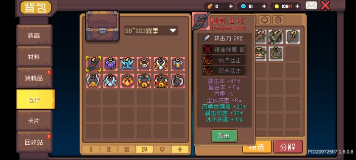 我是从S1入的坑,当时没接触过这种类暗黑的刷宝游戏,加上元气骑士的IP,画风特别吸引我个人,也就硬抗着当时的网卡齿轮一直玩下去,那时候的探索是真的很快乐。直到我发现爬塔太肝,每个赛季都要重新爬之后,遂放弃了。SS3虚空赛季前夕回归,刚好过满SS3赛季,我感觉这个肝度还可以,SS4这个奇境因子感觉反而又把肝度调回去了,总是资源不够刷不出想要的词条。希望两周年赛季能变好,那个虚空缝合词条的机制确实很不