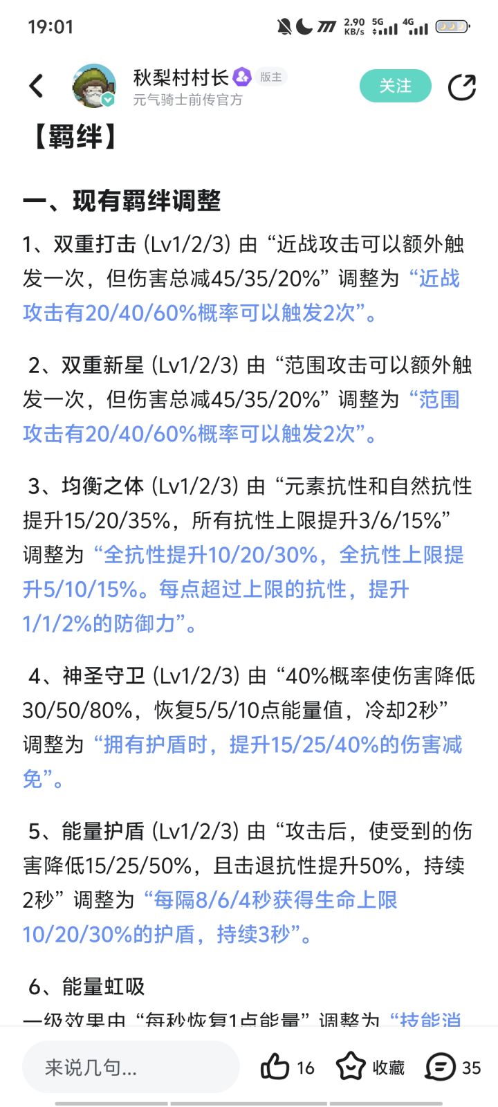装备、属性、羁绊、玩法等大量进行改版,其中最值舒服的是红冠羁绊的锻造终于不用完全随机了,可以去掉已经出现的,大幅减少锻造成本了。#元气骑士前传
