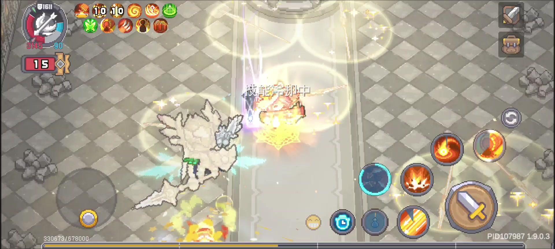 荒野的第三觉醒技能在打征战的时候,因为会在释放的时候强行锁定,而征战里面的boss有个技能会暂时无敌,两个特性一冲突,会让智能放技能的羁绊失效,而且还会让boss血条不显示在中间,现在还不清楚是不显示了还是个boss卡无敌了,反正因为这样,原本慢慢半自动刮过去还能打的情况,得手打,时间很多,而且不知道什么情况,智能放技能的羁绊会莫名消失,虽然重新配置上去还能用,但是老会掉#元气骑士前传荒野战士 #