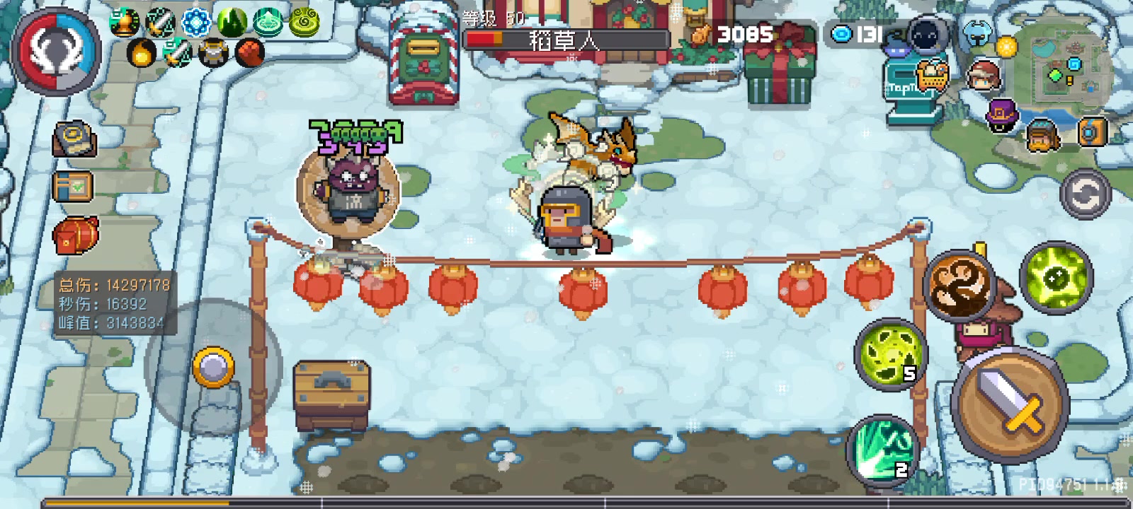 这这次的新年活动多的红武是安年铃,打的是宁静森林的年兽,加上红武一共五件,帽子,衣服,鞋子,武器。第二羁绊是引力星星,铃是生命汲取。是增强火球术的,本次活动也没什么好介绍的,和上次雪人王的机制差不多,单人打50%,联机100%出。(年兽)爆率跟雪人王比起来低了不少,刷了两天,前前后后四五个小时才出了一个,不过难度比雪人王低。(点爆竹打的更快)可以说,各有千秋吧,至于春节活动,一天能打500积分,