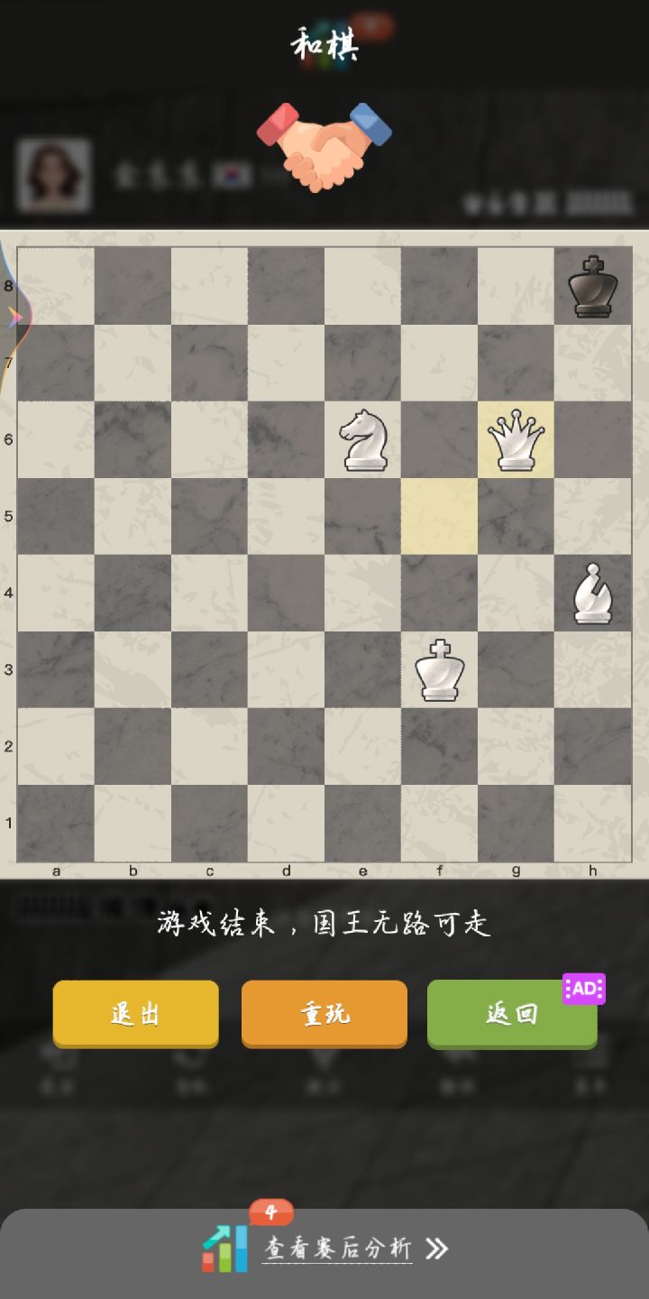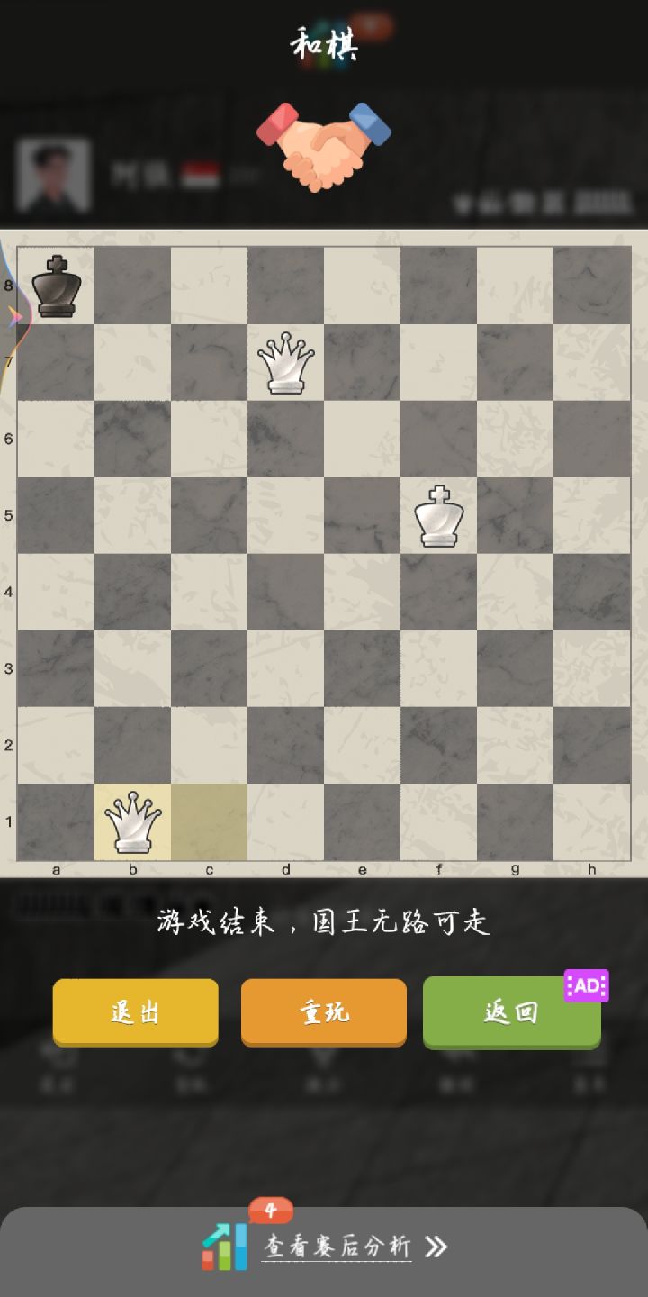 我搞不懂为什么国王无路可走的时候是逼和不是我胜利。。一直打不赢