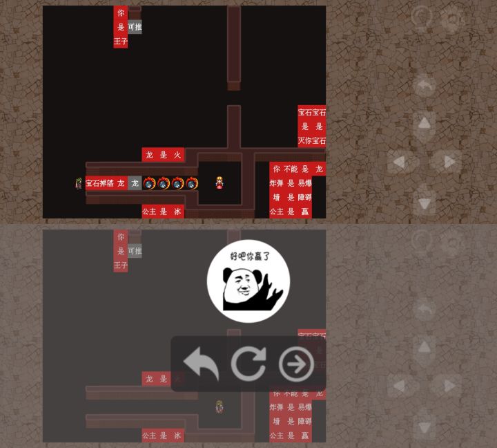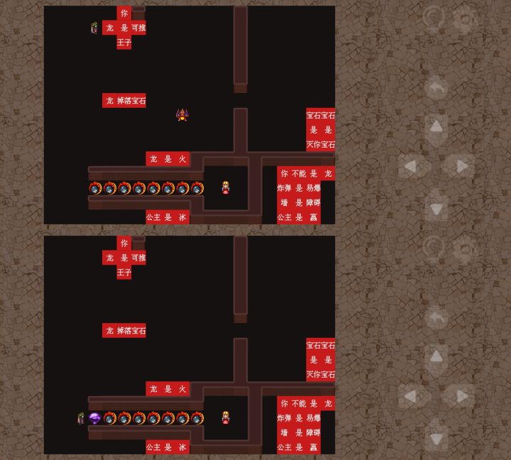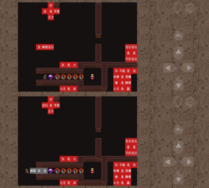 第四十八关1、先用“龙是可推”的“是”引爆右墙口的💣2、把右边的“龙掉落宝石”推至左边,并把文字组成图二所示位置,然后把🐉推至下方💣出引爆第一颗💣,掉落【宝石】。3、再把文字位置改成图3所示位置,并推动【宝石】引爆下一颗💣,掉落🐉4、重复此法即可过关,或者💣数量剩余五颗时,可用多余的四个文字与宝石一一引爆 即可过关,如图4、5所示