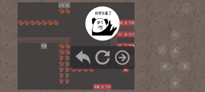 第四十二关先把左上角的“和”、“可推”推至左下角“墙是障碍和锁住”后面。组成“墙是障碍和锁住和可推”,就可以把右边的墙推开,将“赢”与“公主”分别推至“你是王子”的两侧,组成“公主是赢”。触碰【公主】即可过关