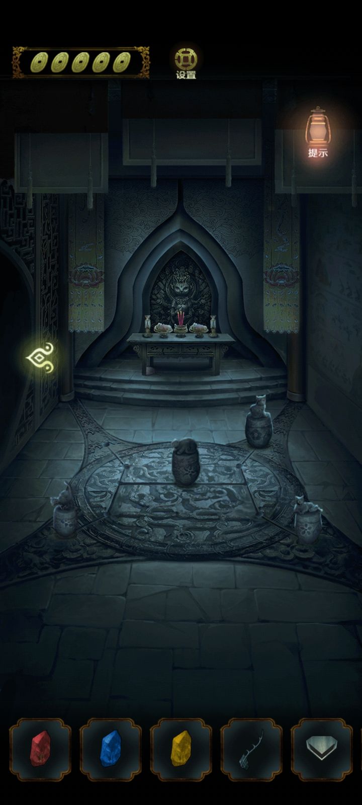 点↗️去如图点蟾蜍石像左边获得如图点↖️去山神庙点供桌下边,点米袋。点⬇️,去河边。点箬叶,获得如图点↖️去山神庙。点供桌点书,获知粽子制作方法。制作好后,获得点山神石像右边。获得点⬇️,再点↗️去神蟾。如没有看到上图的字,要先神蟾嘴巴里大铜钱点开。看石碑上的图案,要喂三个粽子,两坛酒。准备好些后,点三个粽子,再蟾蜍石像头上的石碗,然后点两坛酒。喂完后进去点➡️