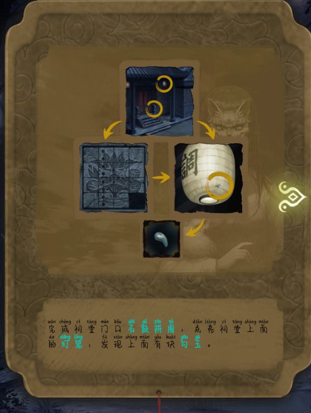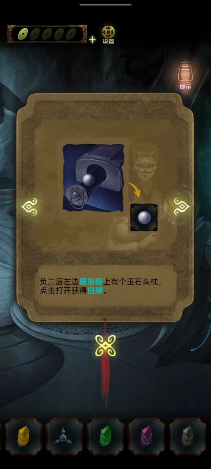 终于玩完了!说一下bug吧,1.有的场景明明知道可能有线索,但是要点好几次才能出来,然后猫来了 ,平安钱没了2.第五章放铜钱那里,千万不要先点桌面的铜钱,要先把背包里的钱放上去。不然,背包里的钱就放不上了,只能重玩,之前收集的宝石也没了,最后通关只能看视频😓(鬼知道我最后看了多少视频,简直就是精神污染)