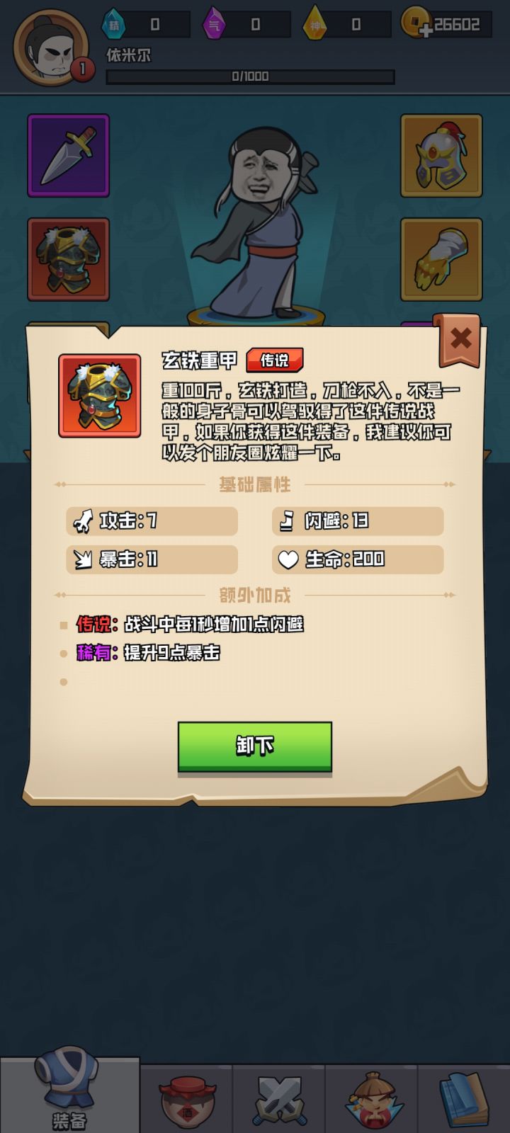 我这闪避呢。带上这个红色装备闪避就没了