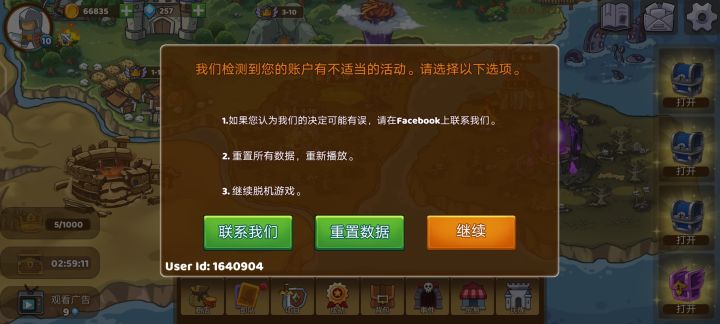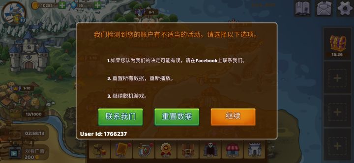 这啥意思?我老老实实打关卡,有钻石小广告就看,没有就不看,怎么还说我数据有问题?难道看小广告是不对的?还是说老老实实玩游戏不对?