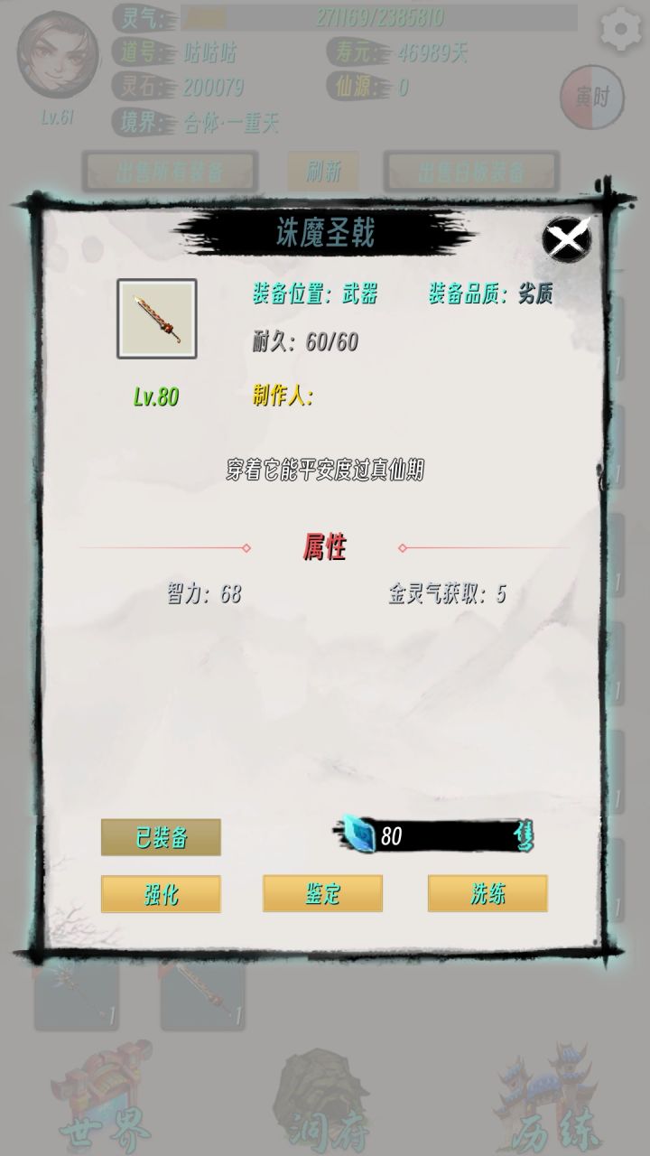 全程平A。又是一个放心过真仙的装备。鉴定太少。强化太少。谁不是收菜还会挂机吗