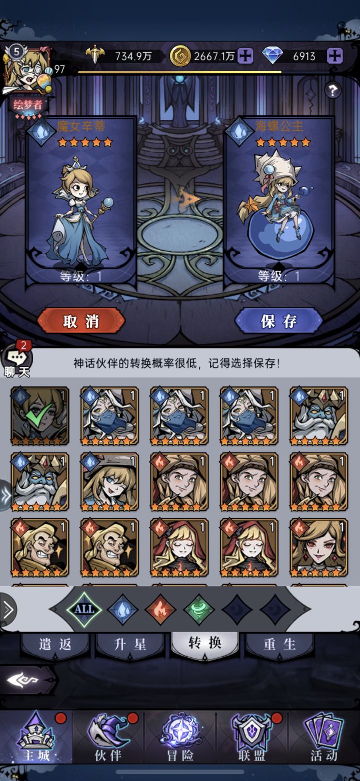 无聊随便转化玩一下,出了海螺,想看看能不能出白雪,感觉没用的神话也给我转换了,结果出了三个海螺…