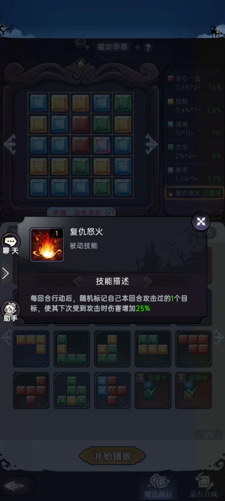激活了晶石技能,打马戏团木桩测试,一倍速,这五栏都找过了,根本没见这技能生效!!
