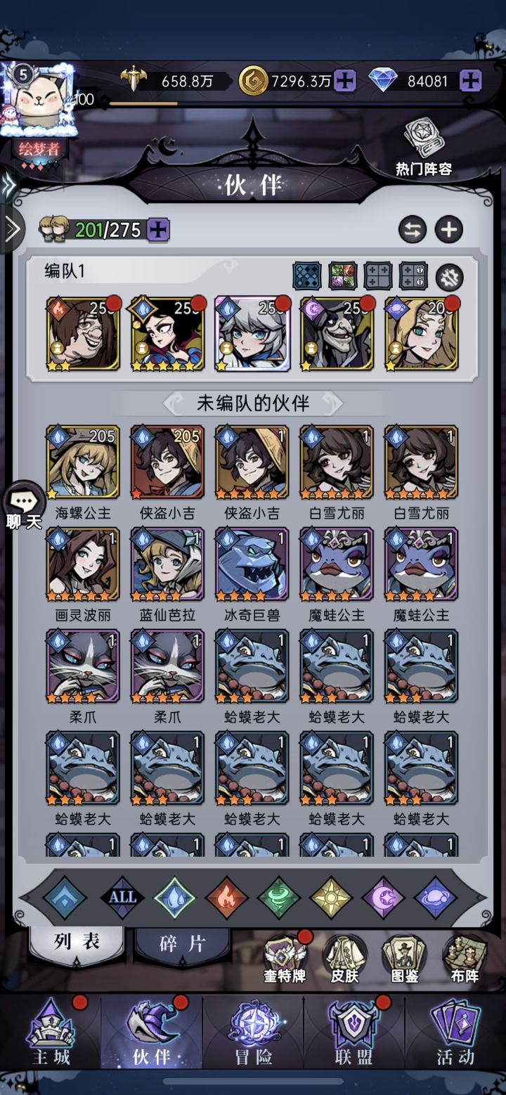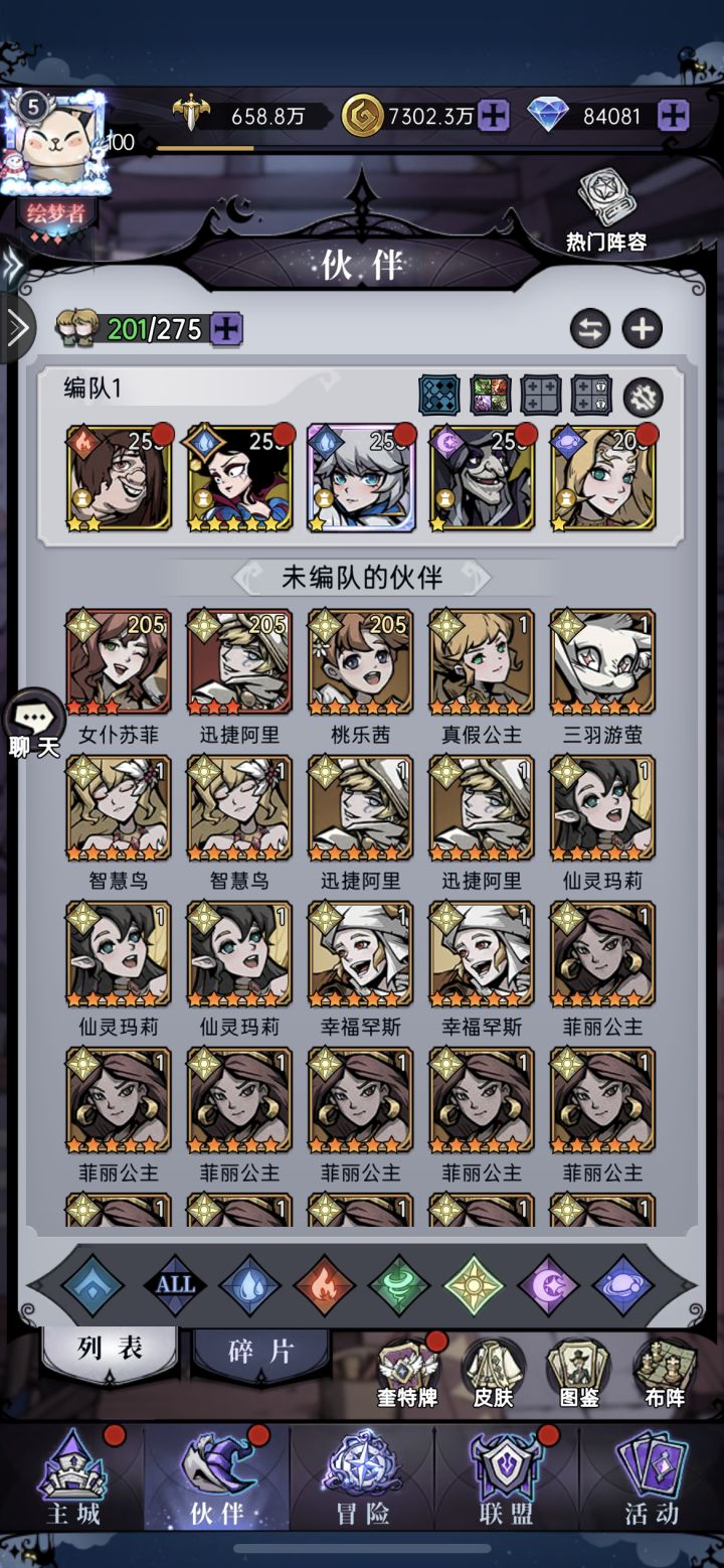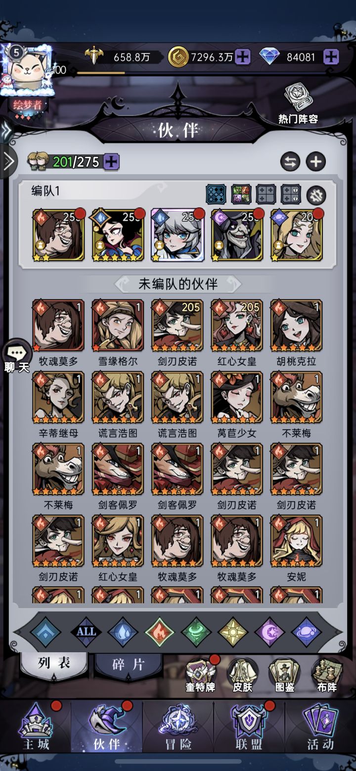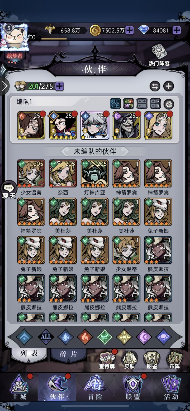 上次玩的时候梦魇马琳才刚出来,现在我完全看不懂那些大佬的阵容了