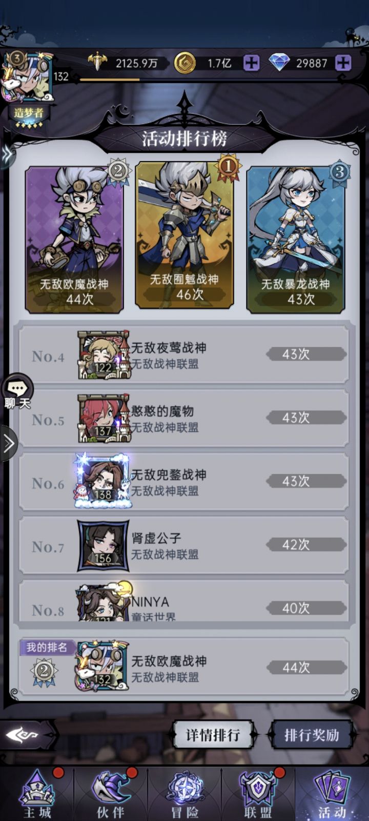 周日开始的活动,休赛,周一应该大家次数都清零了,怎么今天7点打完,有的人46有的44,大部分43。