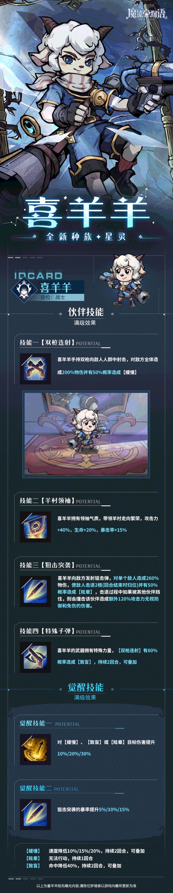 带着小手枪的战士喜羊羊伴你童话之旅披荆斩棘,所向披靡*由于论坛浏览gif长图会出现界面卡顿,现替换为静态图片看了喜羊羊的技能详情,大大们认为喜羊羊可以和哪个伙伴搭配上阵呢?【活动奖品】幸运奖(3位):50元京东卡*1【活动时间】2022年9月24日-9月29日【参与方式】在本帖回复对喜羊羊的阵容搭配想法并附上区服+角色名即可参与抽奖!雪雪子将抽取3位符合参与条件的大大获得50元