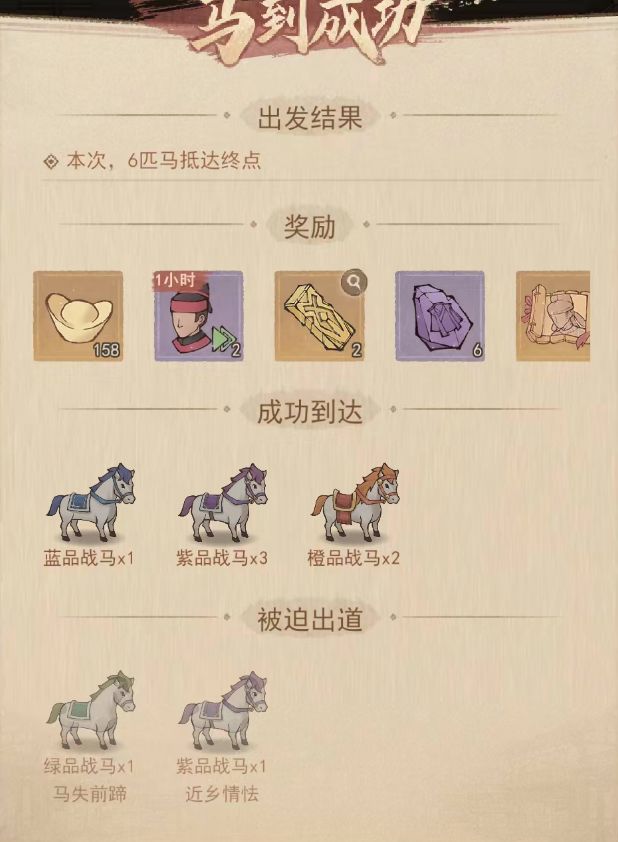 如果说“求贤若渴”考验的是财力,那么“马到成功”这个活动,考验的纯粹是命。作为一名资深老玩家,我本以为自己早已练就了波澜不惊的心态。直到这次为了拿新出的领域皮肤,我点开了那个让我血压飙升的“马到成功”界面,我才发现:原来运气这种东西,真的能把人气笑。今天,我就要把我的“至暗时刻”晒出来,让大家开心开心。至暗时刻一:六马齐发,换来“破烂”一堆请看图1。当时我点下“出发”的时候,心里那是相当激动的。