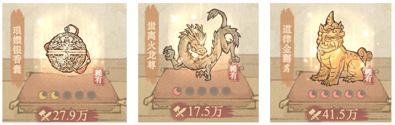 官府流无垢的搭配思路如果玩家使用的是“官府无垢”阵容,通常会搭配李光弼、李善德这类僚属。这个阵容的核心在于控制和负面状态,因此在助战宝具的选择上,“蚩离火龙尊”(火龙) 是最优解,也是目前版本中唯一一个必须绑定火龙的阵容。火龙能提供威仪加成,非常契合官府流的特性。至于主战宝具,可以在“巡天烙日晷”(日晷)、“琅嬛锒香囊”(香囊)*或者 “焚天火狻猊”(焚天) 中三选一。如果为了求稳,日晷和香囊能提