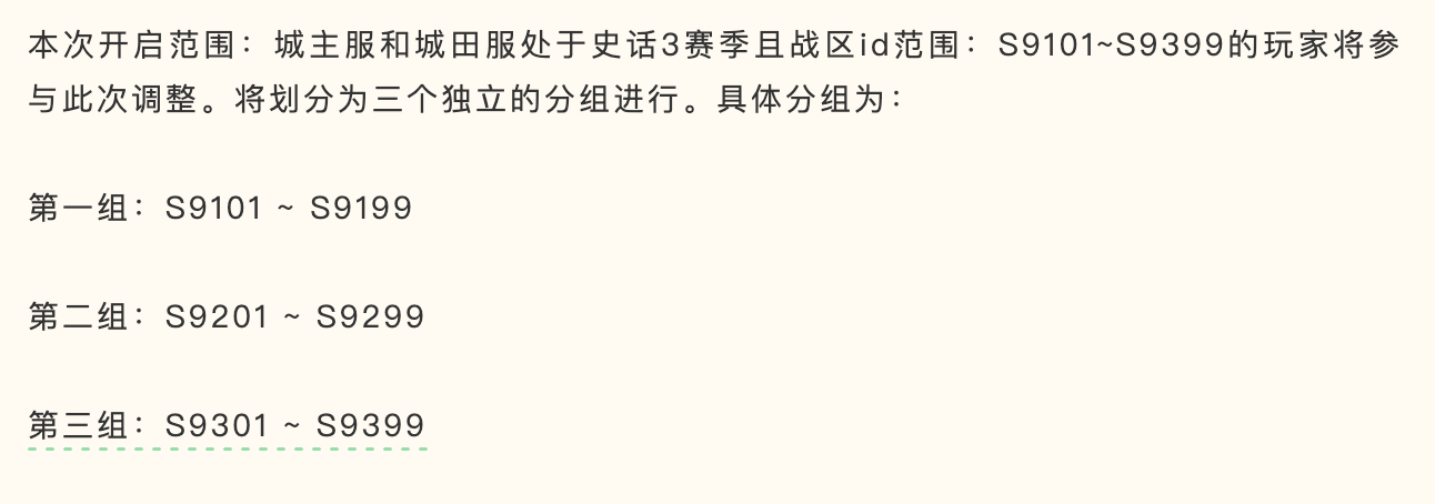 长期以来,许多身处史话赛季的玩家都面临着一种乏味的困境:固定的战区匹配让对手和盟友几成定局,赛季还没开始就知道结局,整个地图往往呈现出“死水一潭”的和平景象,缺乏激情与变数。不过,随着官方最新公告的发布,这种“养老模式”即将被打破。针对部分处于史话三赛季的城主服和城田服,游戏将重启“随机合区”机制。这意味着玩家将告别熟悉的邻居,被重新打散分配,去面对未知的对手和全新的格局。对于渴望新鲜感和战斗激情