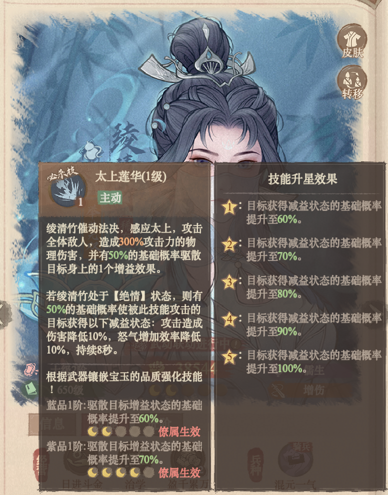 在当前的良田版本环境中,绫清竹的出现被普遍认为是无垢队,尤其是官府无垢体系的一次史诗级加强。以往的无垢队虽然拥有不俗的持续伤害能力,但往往苦于身板较脆,容易在战斗初期被敌方高爆发刺客带走。而绫清竹的技能机制,恰好完美弥补了这一短板,甚至可以说是为了强化“罪状”体系而量身定制的。首先在输出端,绫清竹的被动技能“太清仙元”与无垢队有着天然的联动。当绫清竹在场时,敌方全体受到的“罪状”伤害会直接增加,且