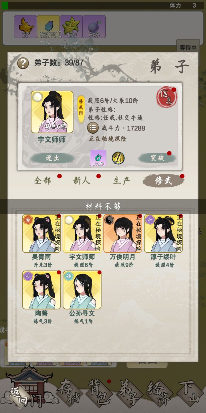 弟子升级,为啥总是说材料不足,这还要啥材料