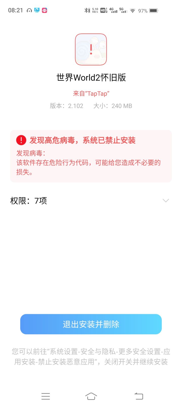 为啥是恶意软件啊,在taptap下的应该没问题吧