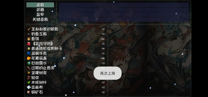 不开心了,想删档,我滑稽币没了,只剩下一个了,辛辛苦苦跑去魔法密林就只得一个滑稽币,现在只剩下一个了我应该有两个滑稽币的,咋办,好烦(关于滑稽币的事这期间我经历了一场灵异事件,逛蛇图的时候都进入战斗画面了,突然有个交谈窗口,一个黑商要我的滑稽币,等我打完出去一看,背包里多了个易经筋,+200生命值 +5的全属性,我想着留到以后再来拿就读档了,当我再回去逛的时候就压根没有什么黑商,一看背包我的滑稽币没了,少了一个,哭死了😭)