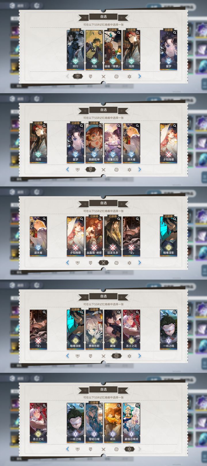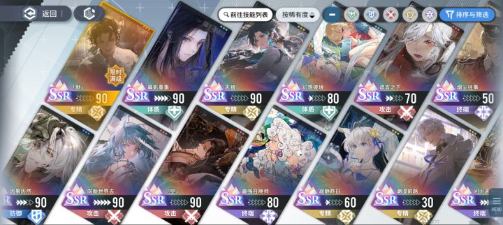 12月20入的,以为那个限时活动是新手任务期所以乱肝了一通,把自己彻底搞迷糊了。现有阵容就这些了,还有一个300抽能兑换的SSR,烙痕SSR1,和好几张SR,都推荐换什么呀?提前感谢!#白荆回廊——古剑奇谭