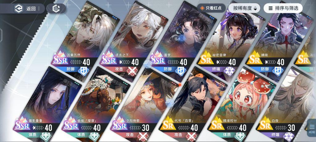 一个是开服的号,第一发龙晴,30 自选直接拿下了卯绒绒,又抽到了耶夫纳快快乐乐玩水霜,没想到任务做完随机出了卯绒绒,问题一花卯绒绒也不强啊,后面抽了莫红袖和岑樱,这个好关键就是没有合适的的烙痕,每次都歪,现在越大越痛苦随即练了小号号二第一个六星昊苍,抽了岑樱补对空,这次玩经验丰富,多抽唠痕,现在这个唠痕玩的还行,肝到今天拿到了随机六,出了鬼手崔,抽完剩余的出了潼,感觉火队玩的顺手些,输出丝滑要