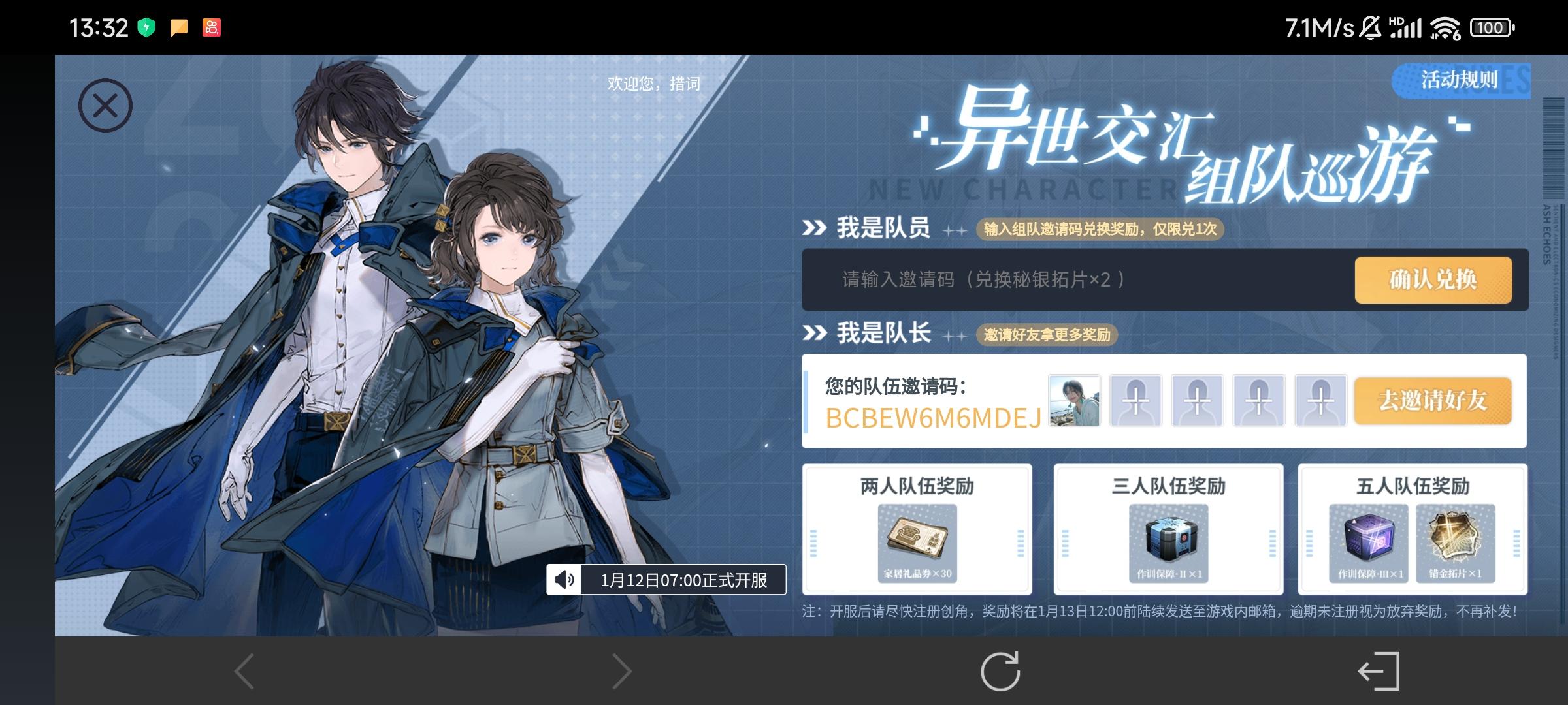 组队领奖励 YKVPGWCM7KDN