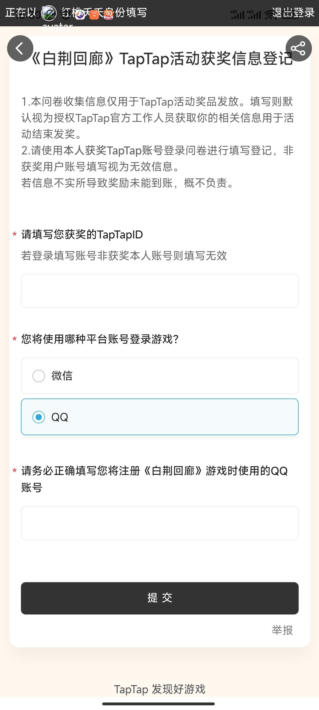 taptap预选选了瓦卡莎,填写账号提交后说成功了,但这个填写账号的页面还能继续点进去填,填无数次都行,这是什么情况呢?不知道之前是不是填成功了呢?