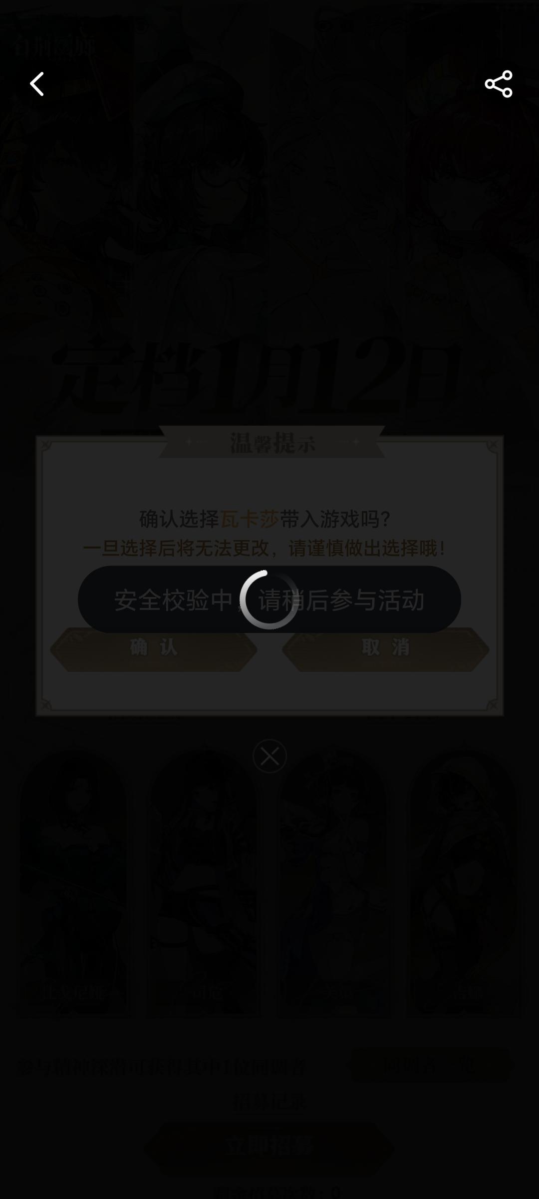 有没有好心大佬知道,老是出现这个安全检验中是怎么回事,好几天了都是这个情况,我都选不了人物