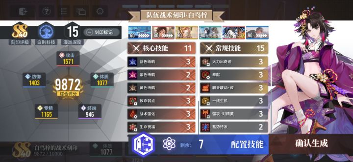 一、刻印衍铸-多玩法优化获得刻印的时候,开放队长技,可供选择!适配场景:a角色的队长技,b角色使用起来会更厉害。操作:1.用a角色搭配b角色的6张烙痕卡,跑一次漫巡刻印。2.把刻印放在左边,把b角色放在右边,点击衍铸。左边刻印的所有技能和属性都会传递到右边,形成新刻印。举例:个人推荐搭配:1.司危+玄戈2.白鸟梓+老卫3.谛卡+司旸二、技能融合-多玩法优化把不同职业的相