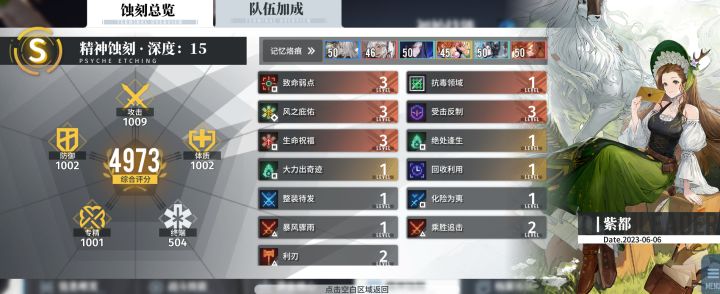 队长:紫都队员:白鸟、尚飞乐、芙蕖、其他任意元素攻击角色配卡:同行、精准控分、因果历然、谎言之下、蛋生、血露薇绝密核心技能:风之庇佑致命弱点千锤百炼大力出奇迹战术强化(技能点多可点)毕业五维:攻精体防1000,终端500思路:芙蕖不用说,白荆的浊心斯卡蒂,增伤一姐。利用芙蕖的加速被动和紫都的治疗技能来永续风之庇佑,达到元素增伤全覆盖。再配合致命弱点的敌增伤,让白鸟和尚飞乐