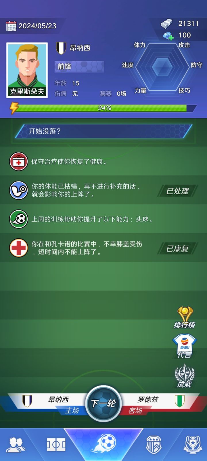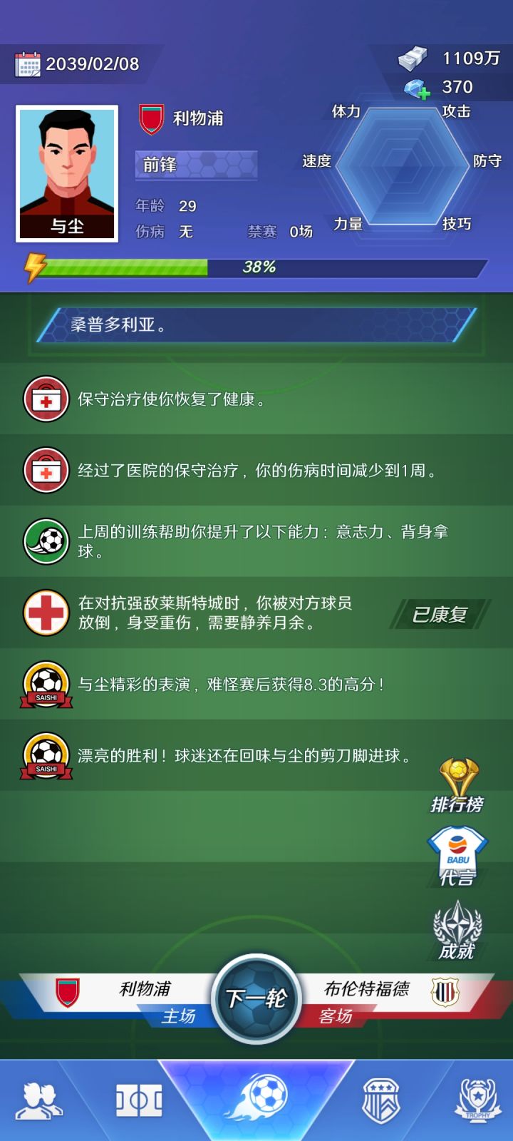 1.增加洲际杯,亚洲杯,欧洲杯这些,只有欧冠和世界杯还是有点少,特别是一些小国家洲际杯有出场机会。2.增加一个心仪俱乐部,可以自选,转会时心仪俱乐部会发出邀请。我有一次30岁了,想从拜仁转会药厂,结果死活刷不出来,不能从高到低,刷来刷去只有那几个豪门,球员也可以毛遂自荐啊。3.球员头像可以多些,只有这几个还是有点少,女足的头像也可以,我不介意女足头像来提男足比赛4.这个是附加的