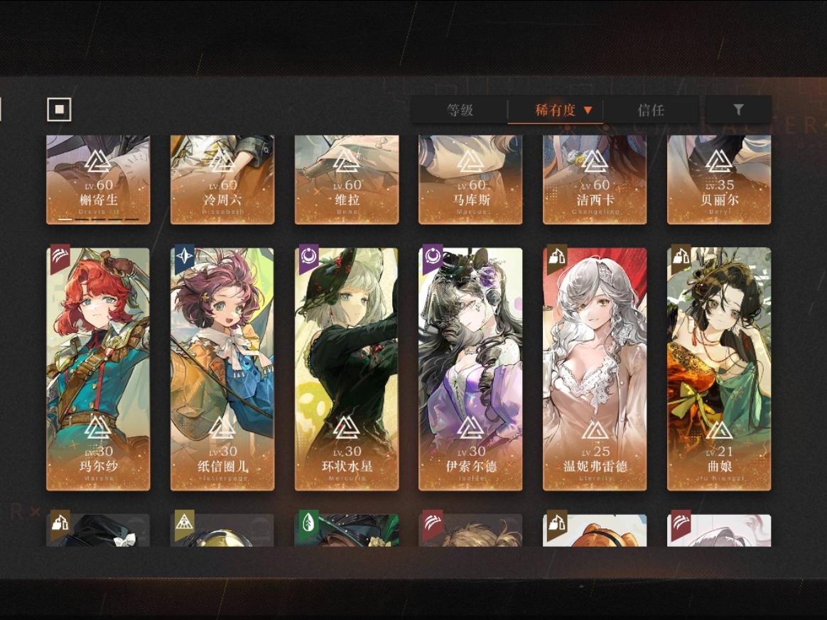 这个打法主要需要能上debuff的生存角色,最重要的是支援带6(1塑)。关于输出,如果6不是1塑造或以上的话就要在前3回合把boss血条尽可能打少,1塑6的说血条只需要血条斜角多一点的部分在显梦前削掉就可以了,2塑及以上应该不需要带输出角色了。本人输出角色练度如后两张图所示,并未练满,甚至温妮还是狂1,除6是1塑外,其它角色均为0塑。打法大概如下:1.在前4回合集中对boss输出,不需要开6