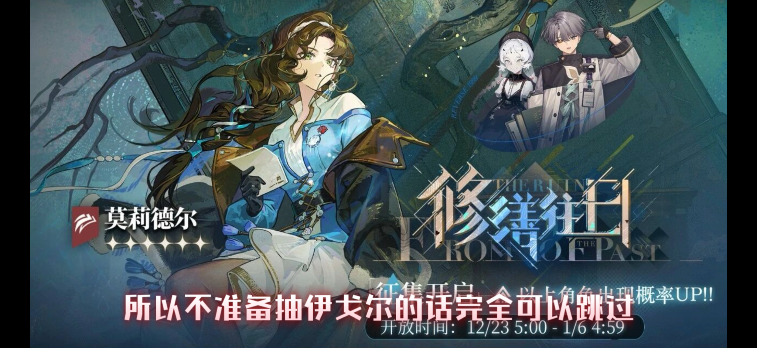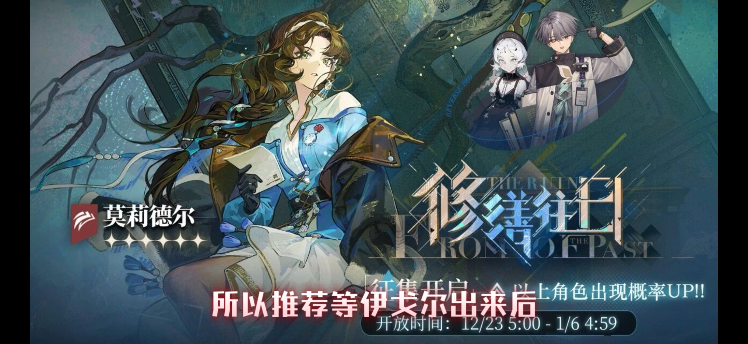 总结就是等伊戈尔出来后再看要不要抽莫莉德尔在这个节骨眼上up莫莉德尔 基本上就更加确定了伊戈尔将军的定位大概率是仪式大C没跑了 这样莫莉德尔up就正好可以补完伊戈尔仪式队 但即使莫莉德尔是仪式伊戈尔的辅助位 也需要对比其性价比高不高 如果有其他角色也能辅助伊戈尔而且效果没差太多的话 也不是很推荐抽取 毕竟目前应该都很缺兔子的当然如果是特别喜欢这个角色的话可以盲目抽取
