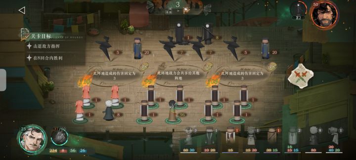 指挥选小船,第1回合尽量凑出小船技能卡组核心:1.洛佩拉和小船召唤铺场(一般是先放洛佩拉)另:小船召唤物的技能,是每回合可以主动换一个位置,并降低敌方该阵地攻击力,某些关卡有奇效2.客船小贩刷压缩饼干,然后反复放芝诺文员刷救生圈,缺罗盘可以放的德洛丝医生3.铺场铺的差不多了,放星锑和独眼军官加攻击