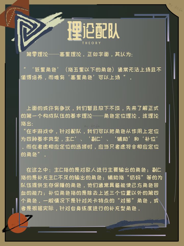 长图文看来是真的很扰人,现在已推出图片省流版,以供参考,期望能有所帮助。 好吧,先来说说为什么写这篇文章。 游戏的一周年快到了,最近就已经有不少新玩家在论坛里面询问如何配队,考虑到不久后的周年庆可能会有更多的新人入坑,笔者查看了下论坛,发现似乎并没有什么人发过什么体系化的帖子,更多的是专门针对某个角色的测评。于是我打算制作此攻略,以供诸位参考,期盼能引导诸位更好地配队。 首先,笔者个人将配队