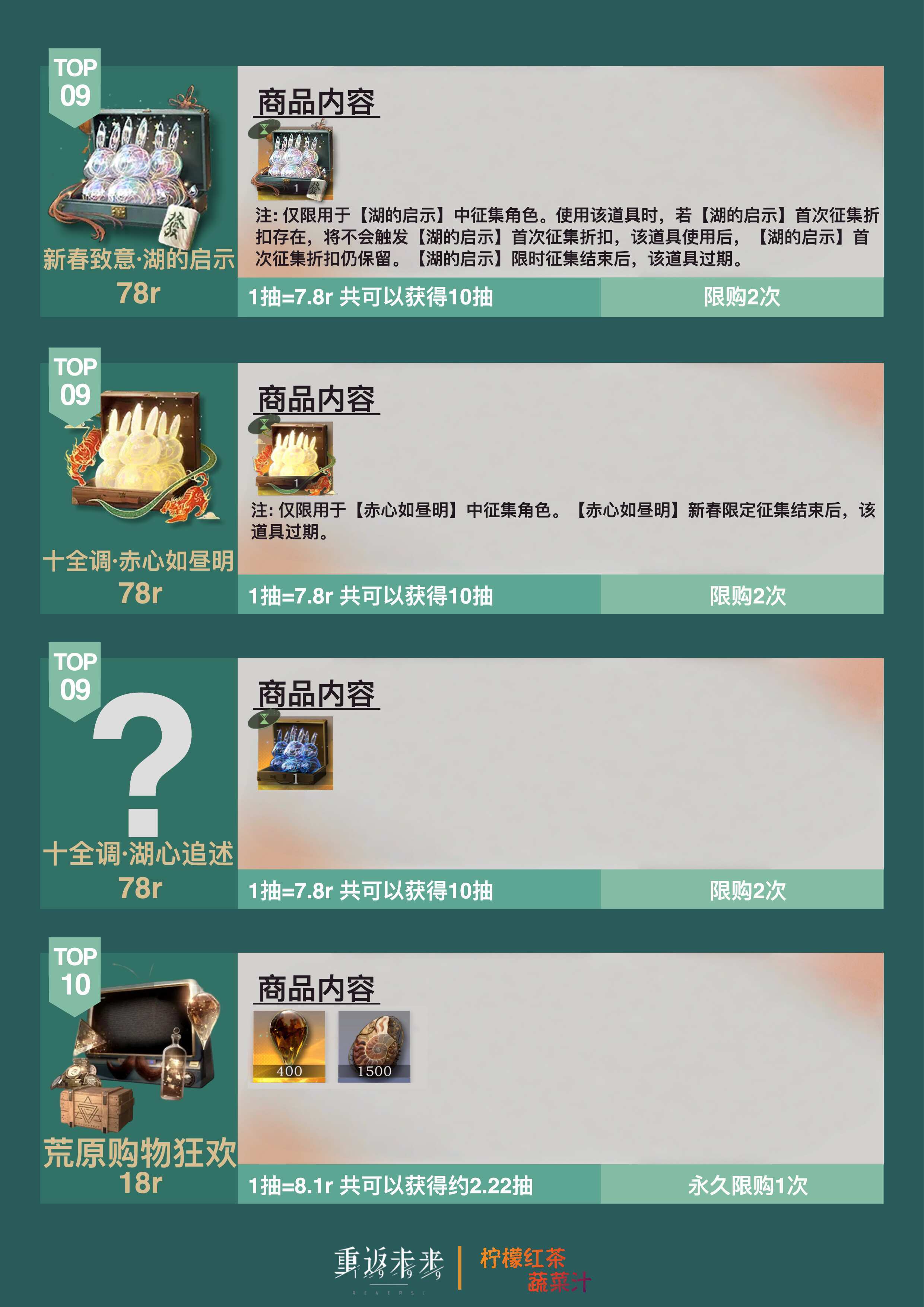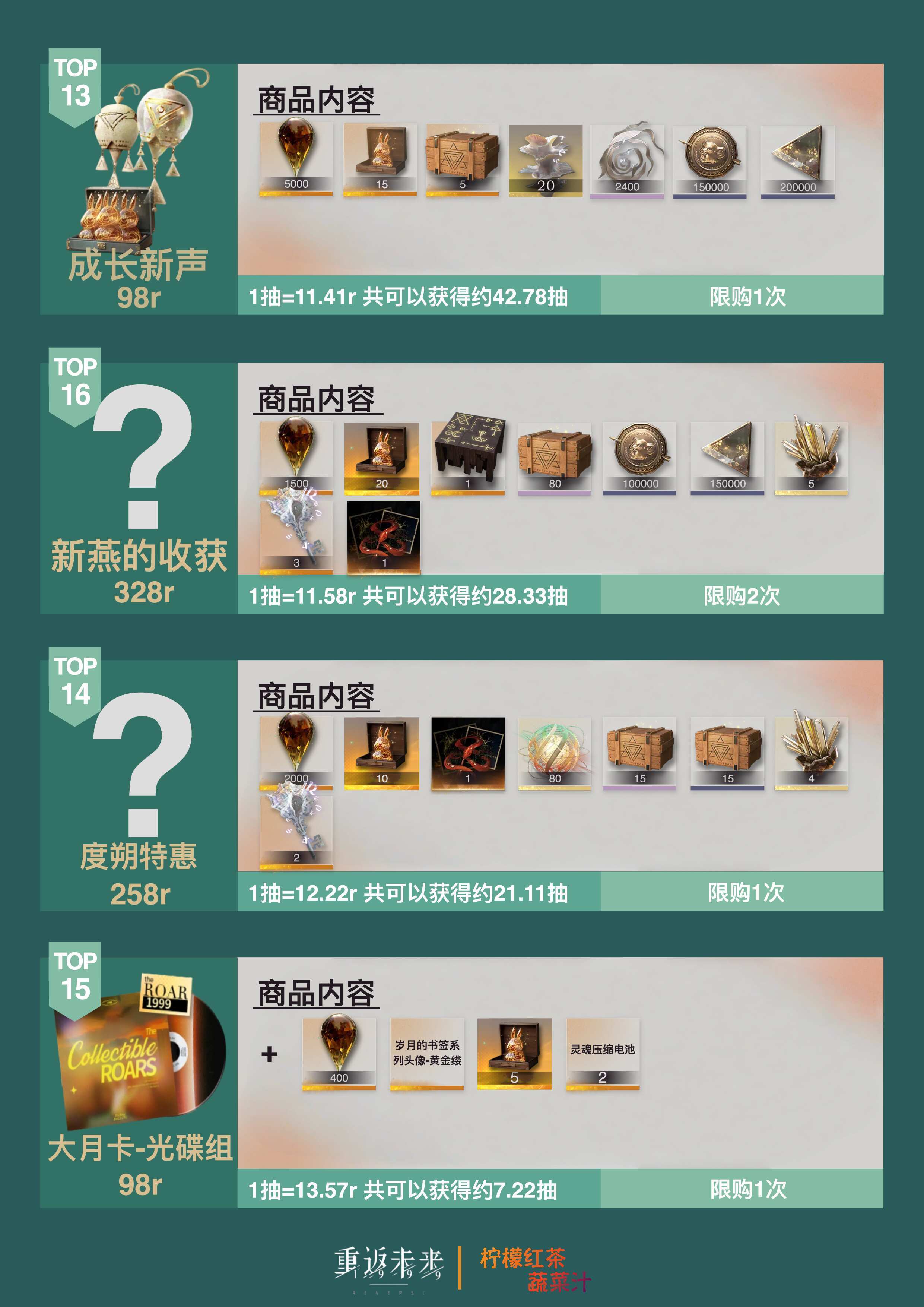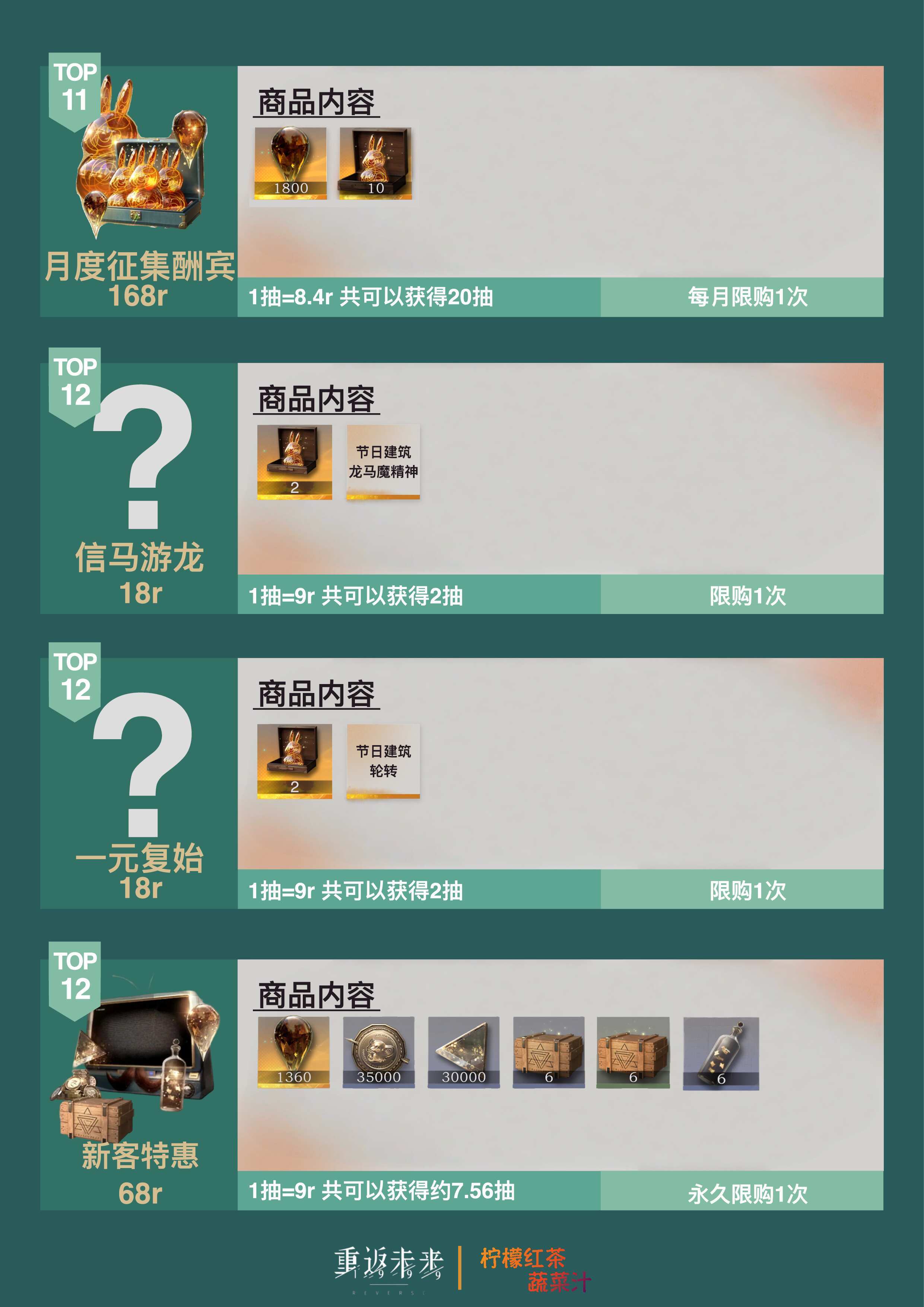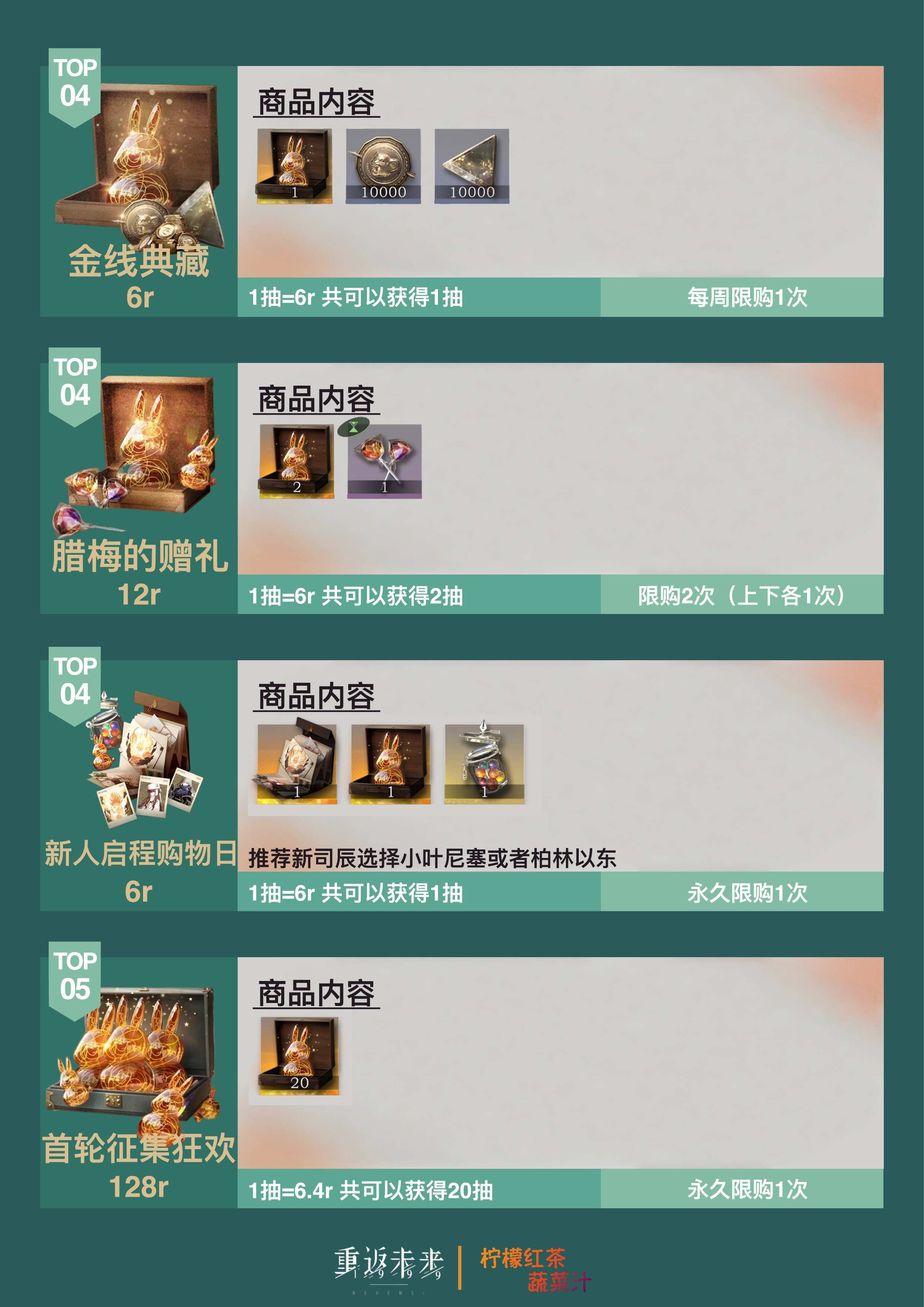大家好呀!这个笔记展示了3.4新春版本「雨滴」&「金兔子」礼包性价比排行榜最后,制作不易,给个三连应该不过分吧🫰同时也祝各位1发出金,10发满塑—————————————————————————✅如果在内容、美术等方面有任何需要改进的地方,希望大家多多提出来!✅如有任何意见、想法或者是发现错误,欢迎大家提出来!✅请各位在评论区友善交流!✅请大家谨慎辨别评论区中“加群”“代肝”等广告