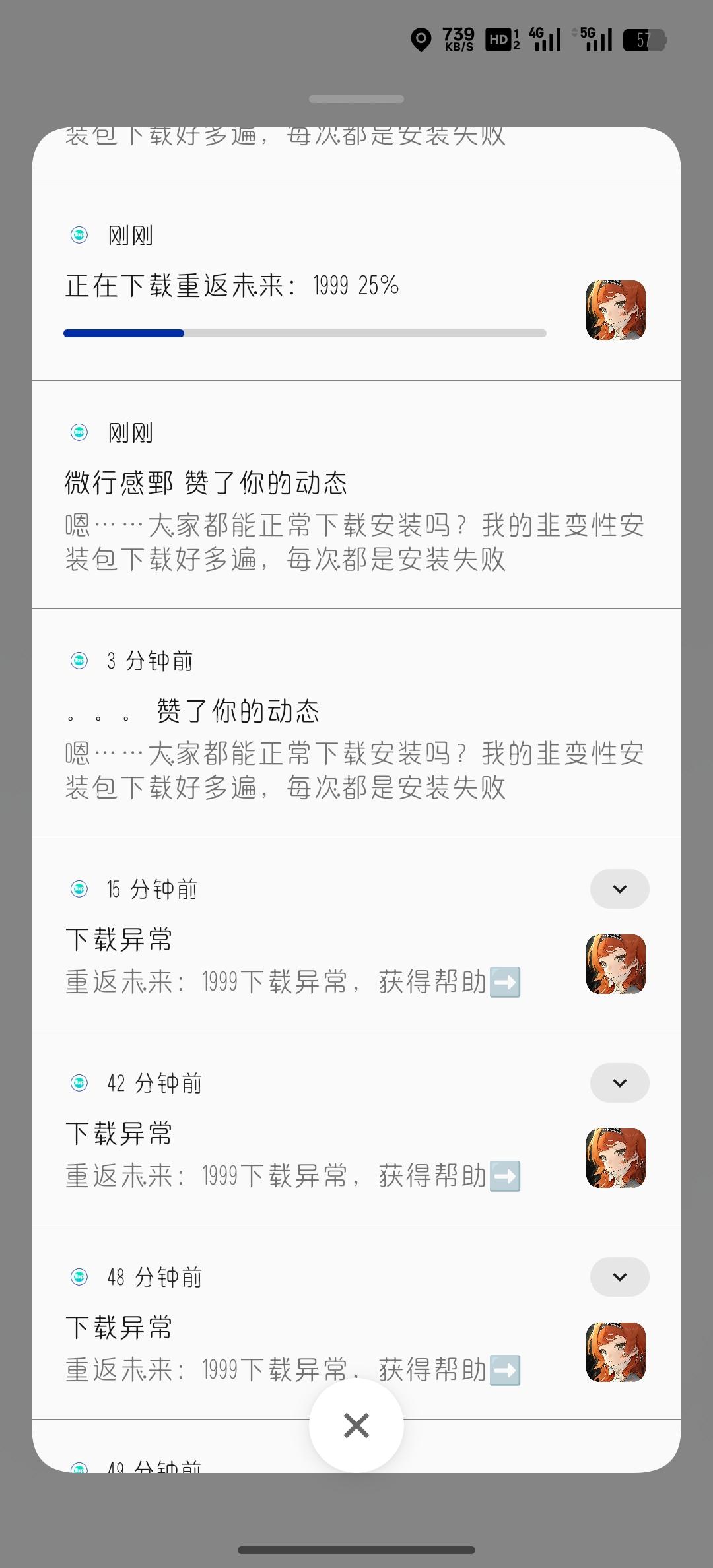 嗯……大家都能正常下载安装吗?我的韭更新#重返未来1999求助 安装包下载好多遍,每次都是安装失败