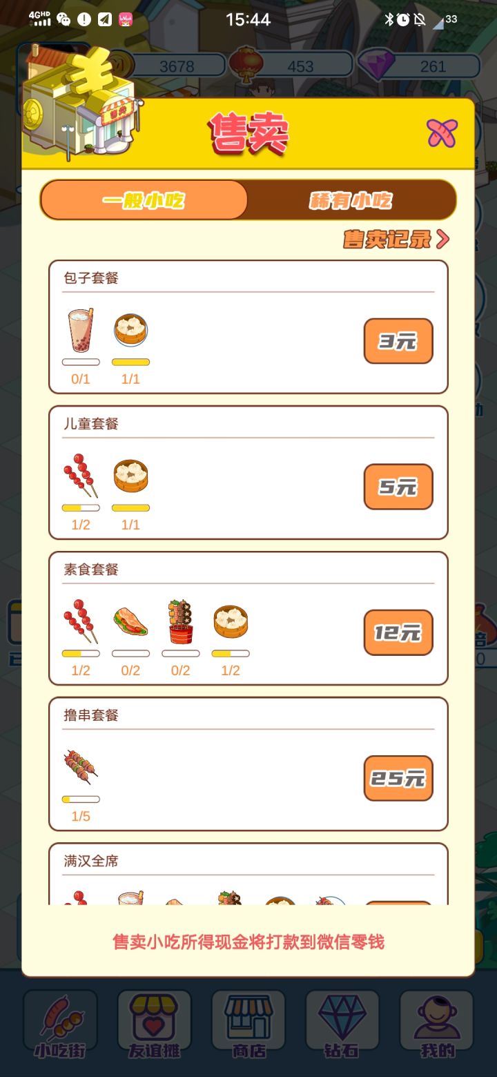 进入游戏会送一个新手小吃,售卖0.3,进入售卖秒到微信(必须)。