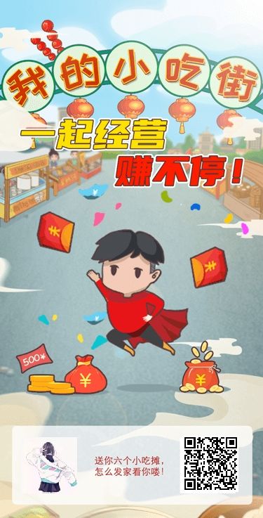 快扫描二维码加入游戏吧!!!扫描二维码加入游戏,每升级一个5星摊位找我领2元红包,一共六个摊位是12。记住,每升级一个五星领一次!!!