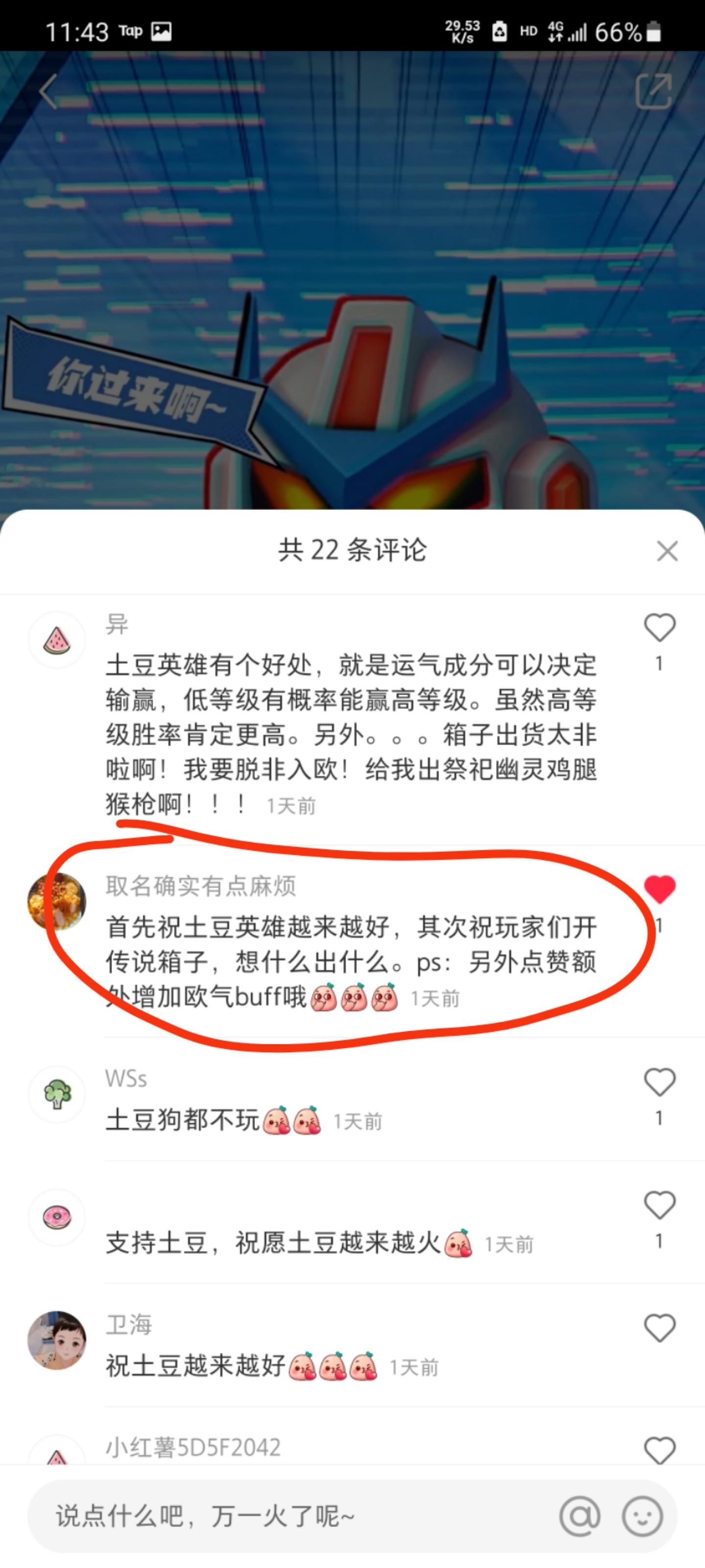 给个小建议:土豆英雄对局的时候召唤出不想要的土豆可以卖掉,经常出满级土豆没办法处理,还占格子,幽灵还很难抽。这样很难打路人局合作。望采纳。