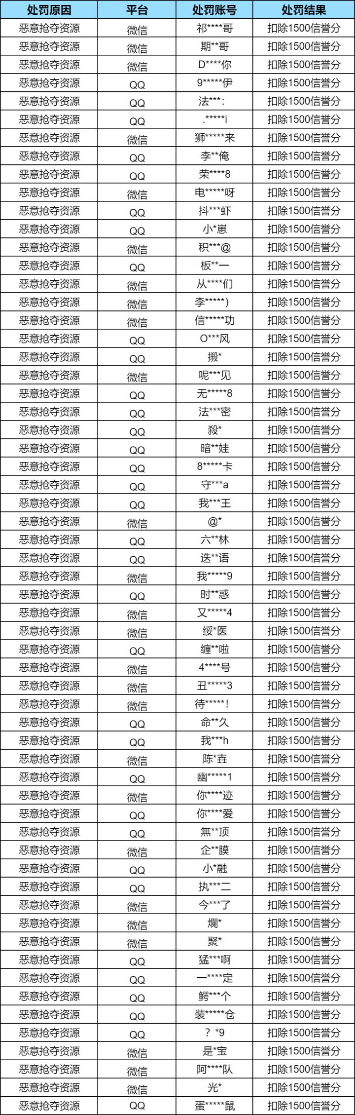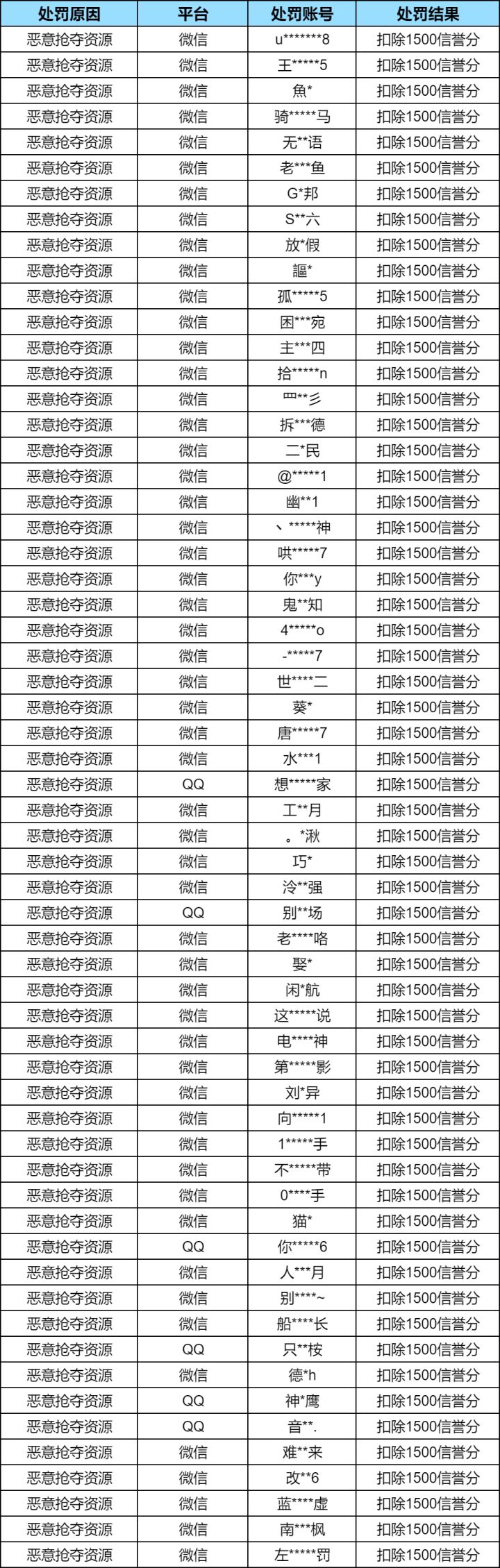 【安全处罚公告】 违规行为及恶意抢夺资源处罚公告 (2月20日)