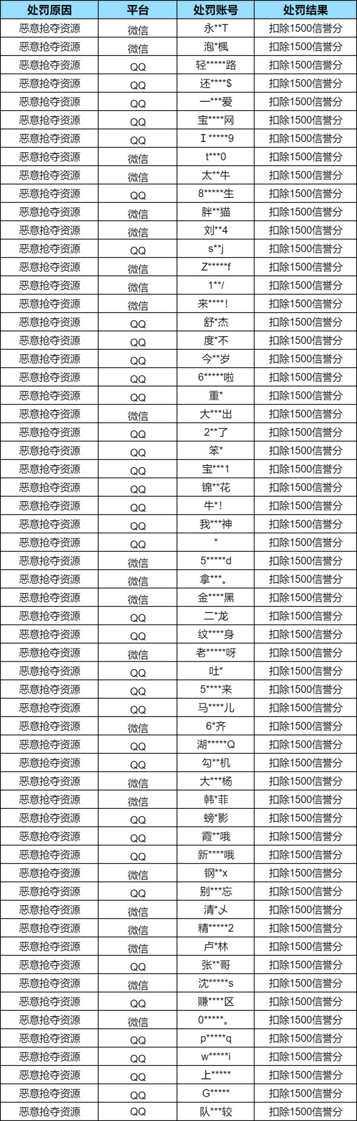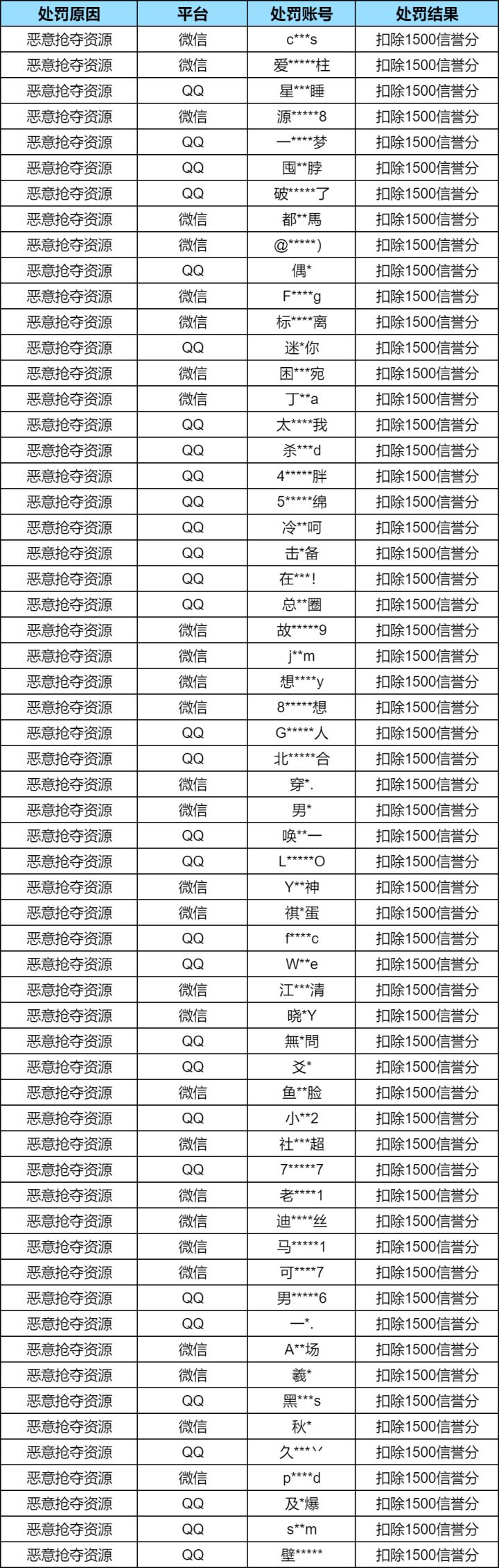 【安全处罚公告】 违规行为及恶意抢夺资源处罚公告 (12月19日)