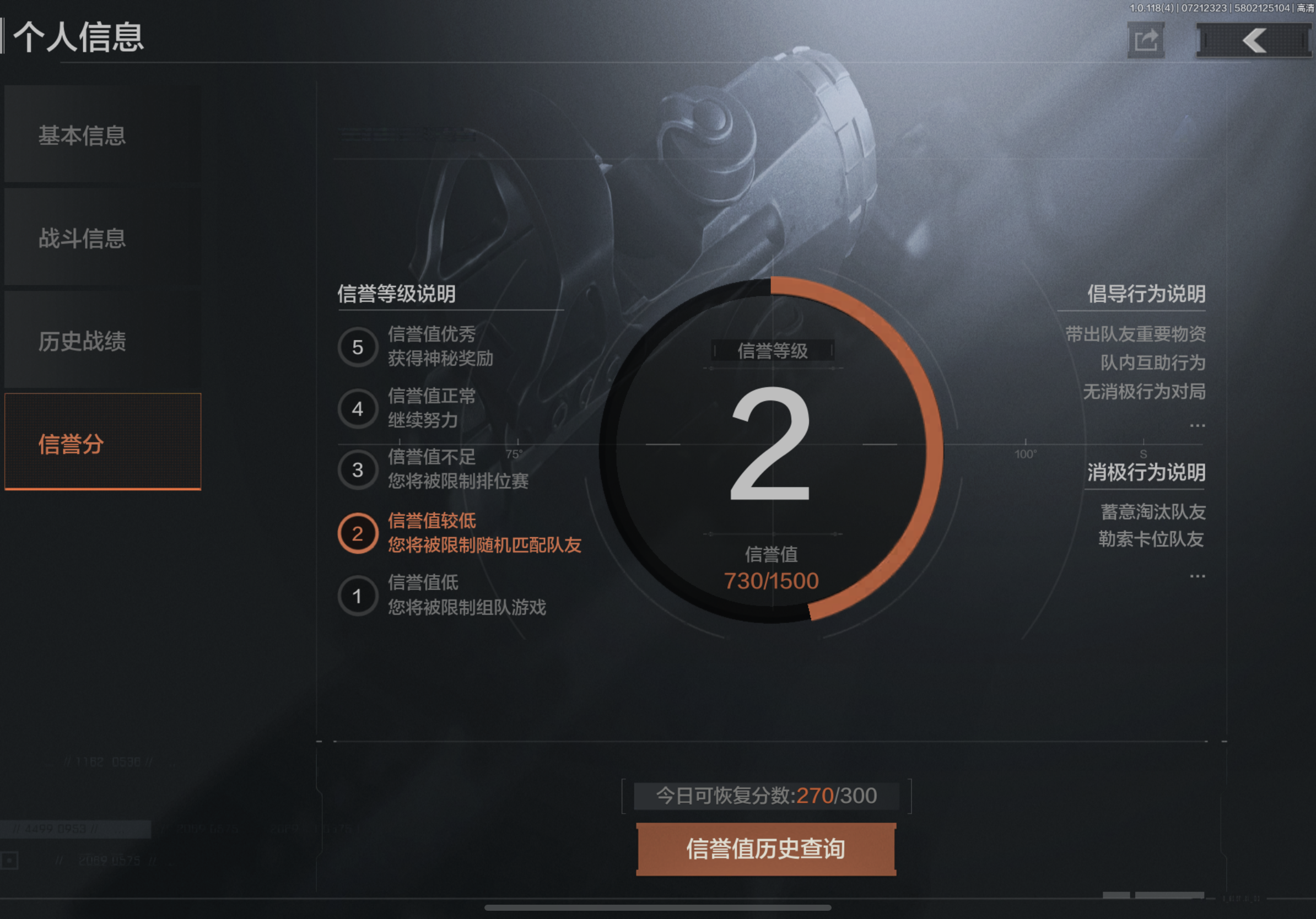 进屋搜物资被队友卡门要装备,扔雷把他炸死被举报封1天扣800分,第二个号手雷被楼梯栅栏弹回来队友和我都死(两个号都买手册和会员),现在只能单排被全装队追着打。最讨厌刀苟队友,我打死的全被刀苟拿走。匹配也很无语,2个跑刀队友,敌人是全装队且4人,有时就不给我匹配队友,让我1个人打全装队😅