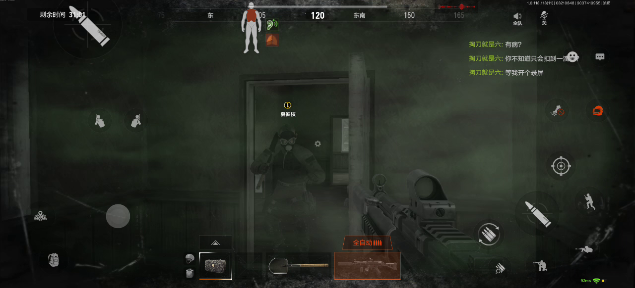 家人们,没错,又是我,我又被zz儿童堵门了还拿毒气弹扔我,但是我不打血,我就等他没毒气了我再打血,后面下面来了个ai他没卡住我我就跑了,在马厩门口也不知道他哪里搞来个燃烧瓶扔了我一半血,我没死他给自己烧残了被ai打死了😂