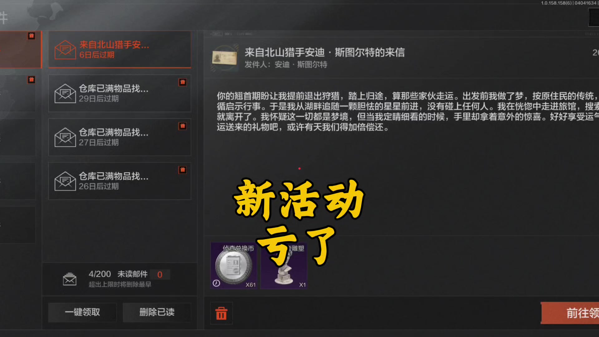 配件太少,子弹大部分一级弹,三级弹找到还需要压弹,人很多,药品难找,背包太小。第一名才可以带出去装备,刷毒不提示,很别扭的感觉。 出生点也非常奇怪,显示没人,落地就有一队贴脸互刀,空投一堆人抢。对局压力大,且赚不到钱。